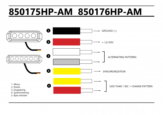 Strands Blixtljus mini orange 12-24V 6LEDx3W med mantlad kabel.