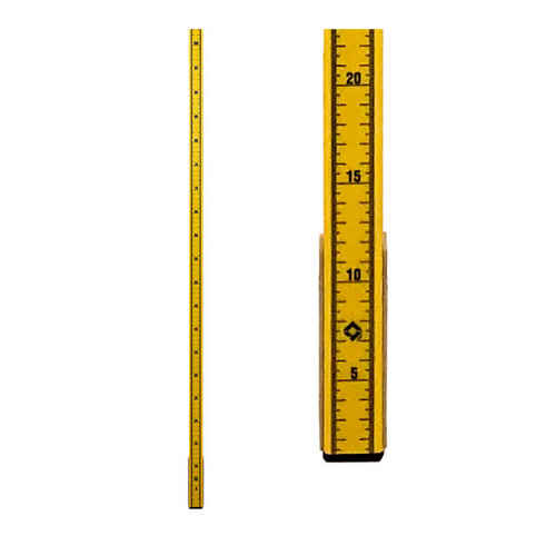 Tryckt svart gradering mot gul skala med hög läsbarhet. Förstärkt metallfot för montering i grusring eller platta.